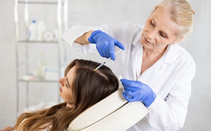 Involves drawing a small amount of the patient’s blood, processing it to isolate platelets, and injecting the platelet-rich plasma into thinning scalp areas. The growth factors stimulate dormant follicles, improve blood supply, and promote thicker hair growth. PRP is minimally invasive, requires no downtime, and shows gradual improvement over 3–6 sessions.