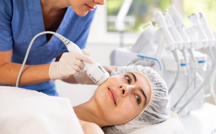 Ultherapy is a non-surgical treatment that uses ultrasound technology to lift and tighten the skin. It is commonly used for face skin tightening, including the neck, chin, and brow areas.